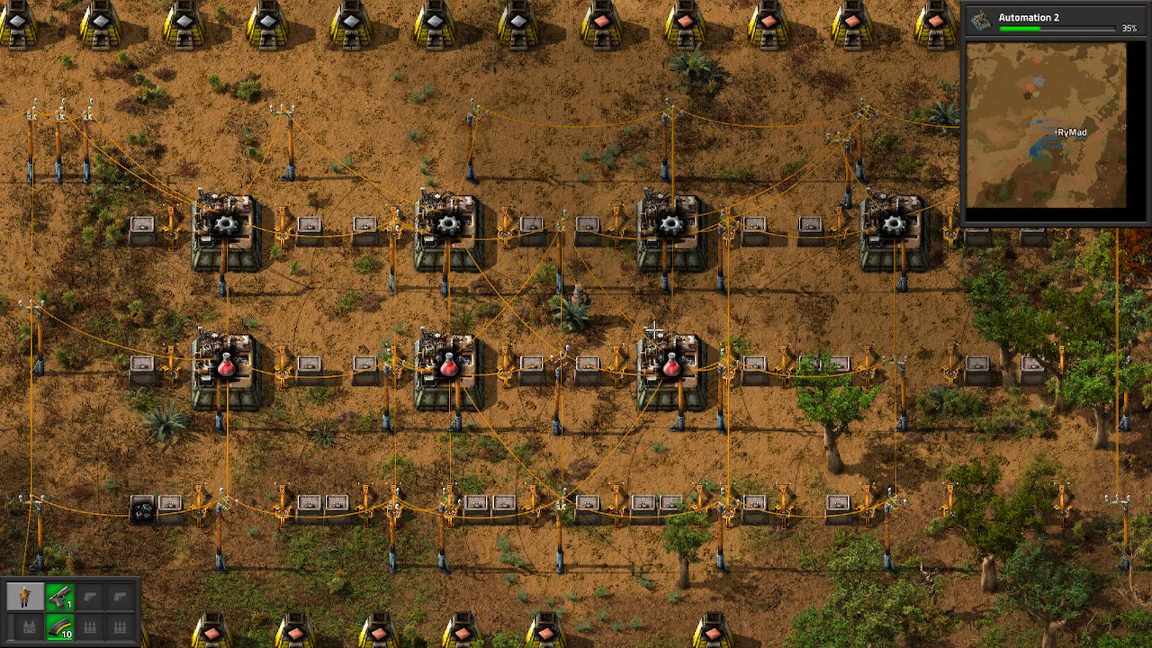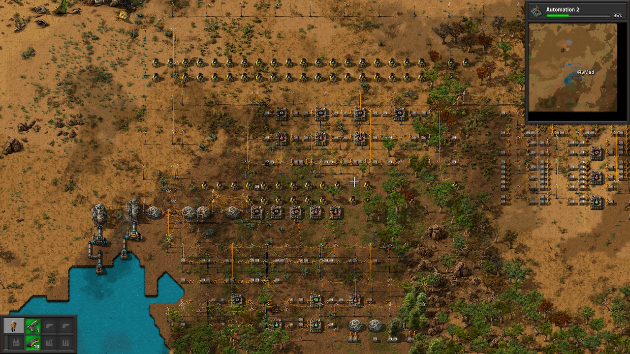 It was halfway through the ‘automation 2’ research when we ended the second testing run. The final factory looked like this: