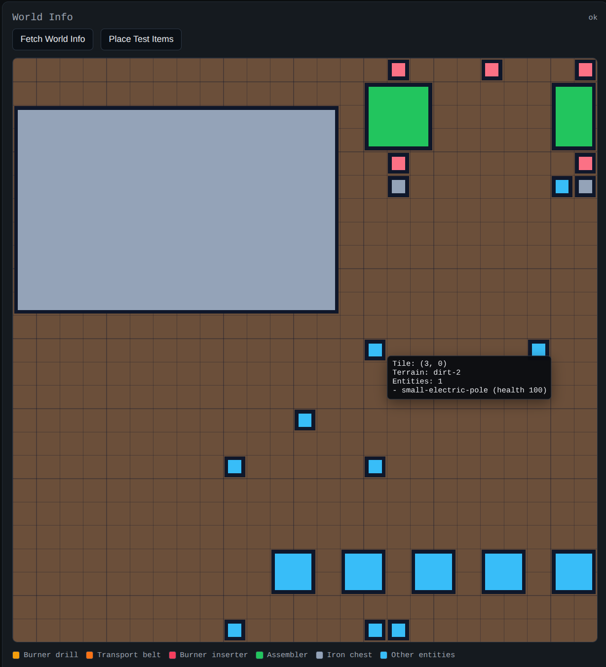 Originally our plan was to implement a basic renderer in the web UI to show where entities were on the grid, and we actually got part-way down that road: