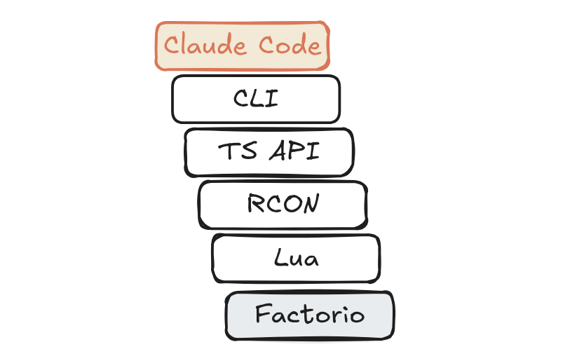 To play Factorio, we needed to give Claude Code an interface for the game, some way to read the game state and take actions. We looked at a couple of options: